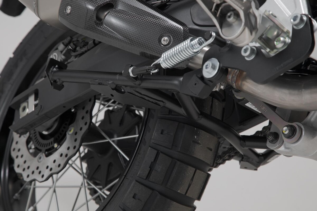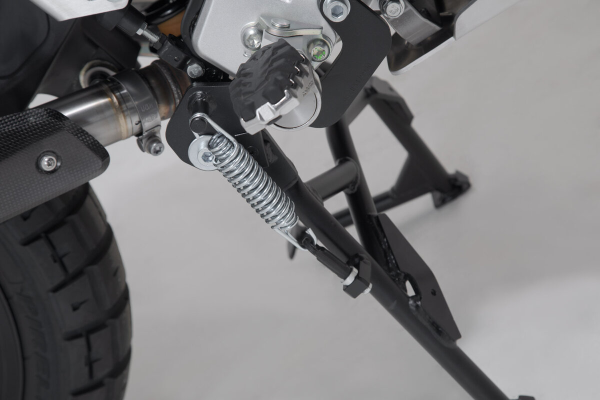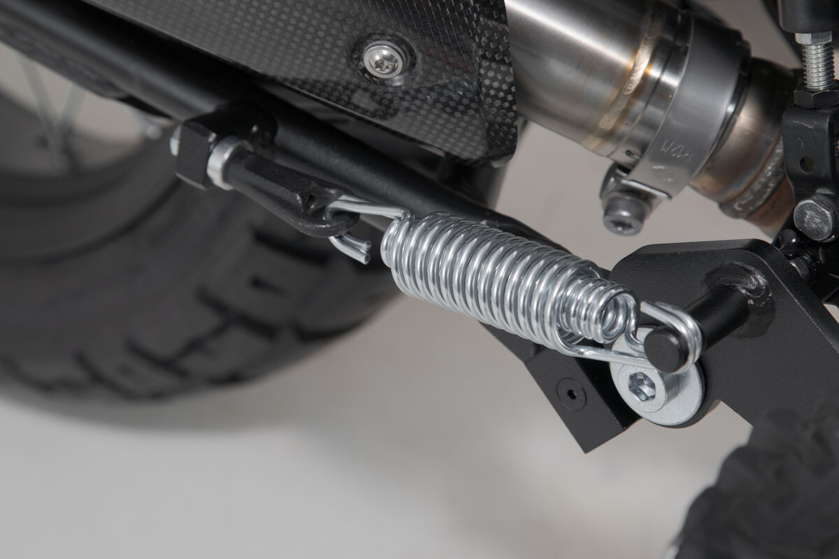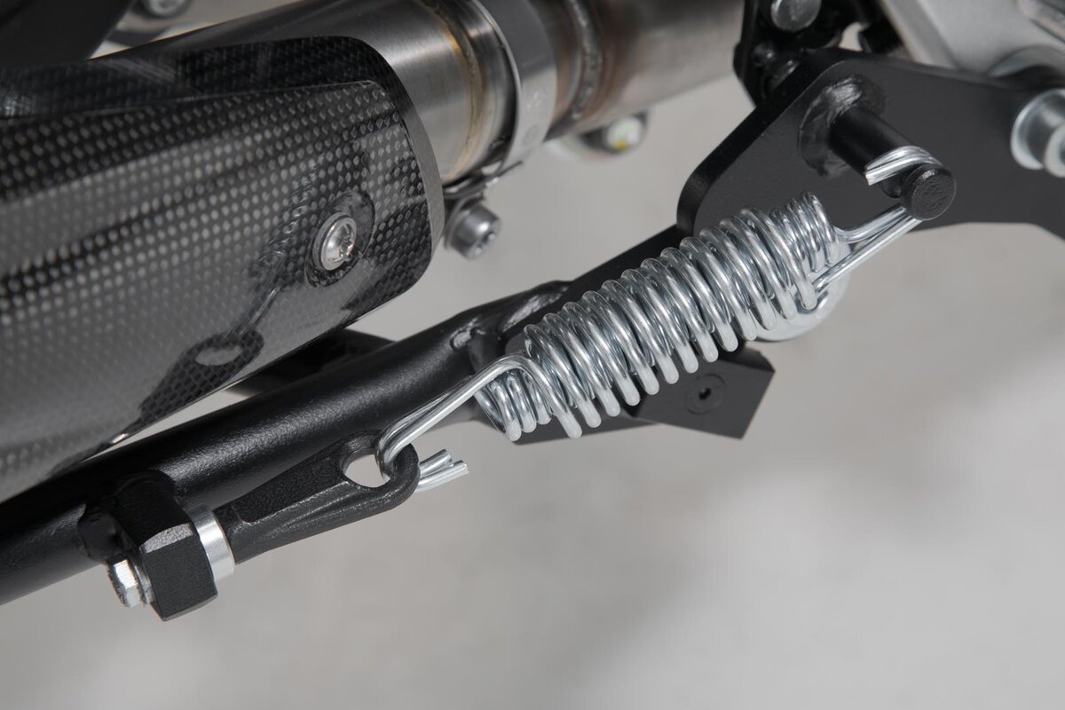 Thanks to new technology, the Yamaha Tenere 700 centerstand can be mounted without any effort: The spring is hooked in without any effort.