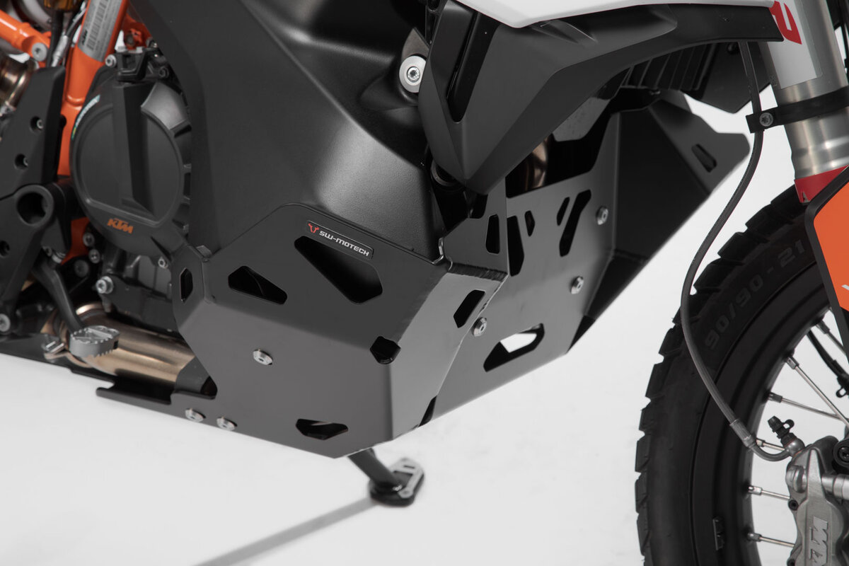 Constructed of 4 mm thick brushed aluminum plate, protecting the underbody of your bike from stone chippng and collision. The whole pattern ensures good ventilation of the engine block.