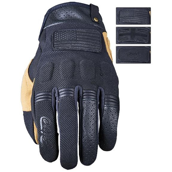 Construction that includes perforated goat leather on the ring and pinky fingers and wrist Interchangeable velcro patches (delivered with 3 patches)