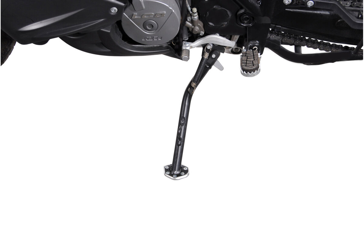 surface prevents sinking in soft ground. Side Stand Extension is silver